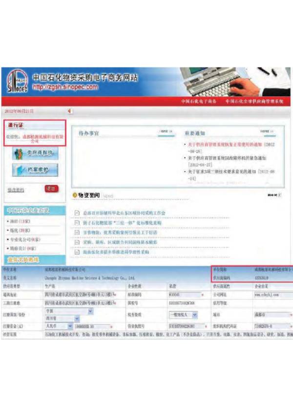 中國石化物資采購電子商務(wù)網(wǎng)站后臺頁(yè)面