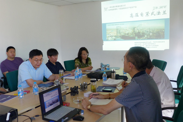 In June 20, 2013, "Chengdu plant general manager Xu Zhifu source" Beijing Shenhua Group do high-pressure self tight flange ZY-LOC technology exchange. The total Xu ondesign principle, high self tight flange production technology, application, market prospects in detail. Shenhua Group delegates have certain application achievement of high pressure self tight flange ZY-LOC, especially in the Erdos coal to oil project (world class high temperature and high pressure, high corrosion, Gao Chongshua's harsh conditions), to verify the performance of ZY-LOC. At the same time, director Sun Yunkeasked high-pressure self tight flange ZY-LOC after sale service and delivery time, Xu Zongyi answered, and invited the Shenhua leadership to our production base to visit to inspect and guide the work.